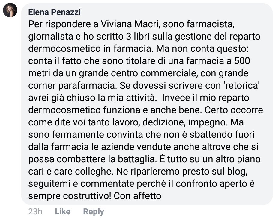 Ne parlo perché l’articolo di lunedì ha suscitato molti commenti e alcuni dissensi neanche troppo velati. Vi riporto alcuni di questi commenti dalla pagina Facebook di Farmacista33: