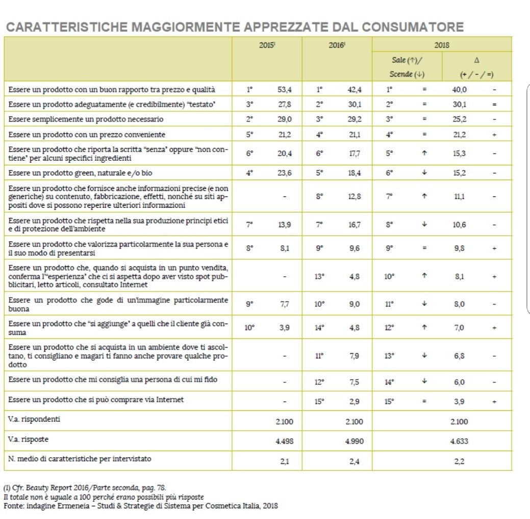 Oggi vi riporta una tabella che è contenuto nel Beauty Report 2018, ovvero l’analisi dei consumi della cosmesi in Italia, commissionata alla società Ermeneia da Cosmetica Italia.