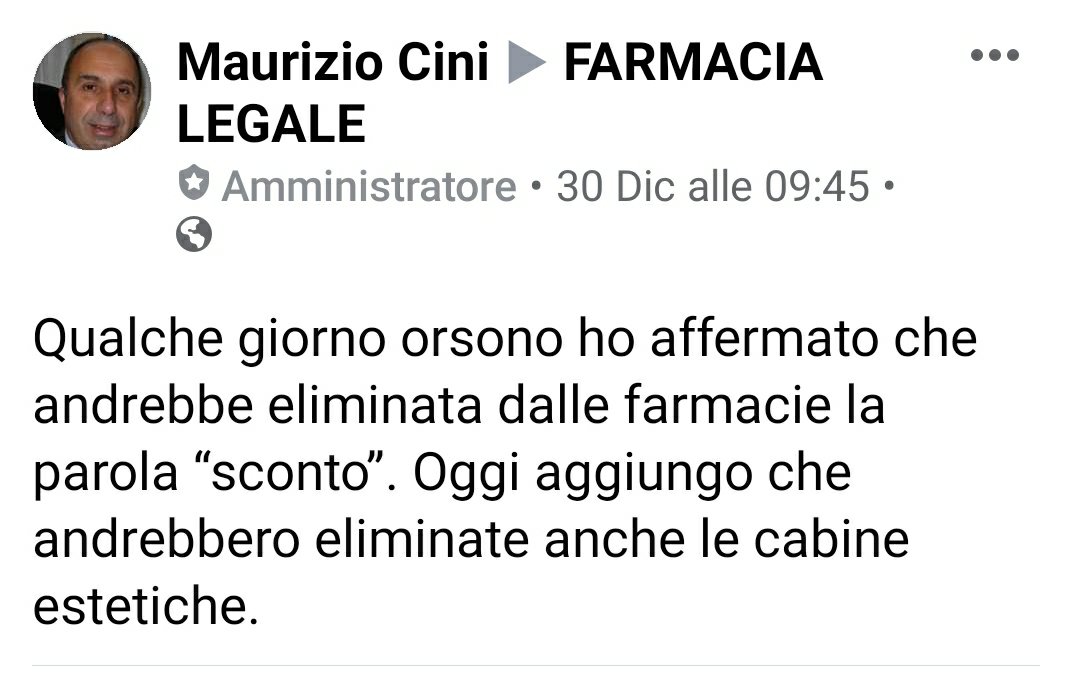 Lui, mio professore universitario di legislazione farmaceutica all’Università di Bologna, con una grandissima cultura del mondo della farmacia, asserisce che andrebbero eliminate le cabine estetiche dalle farmacie. Ora voi sapete benissimo quanto invece io creda nel mondo dell’estetica in farmacia Se fatto in un certo modo, con studio, criterio e conoscenza e con annessione diretta al mondo della salute e della dermocosmesi in farmacia. Ecco quindi la mia risposta al professor Cini: